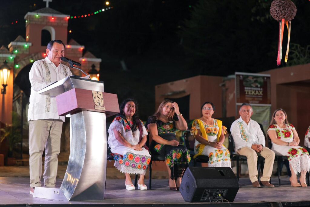 Posteriormente, el jefe del Ejecutivo estatal presenció un festival que celebró la cultura y la lengua maya a través de presentaciones musicales, poemarios y la tradicional vaquería.