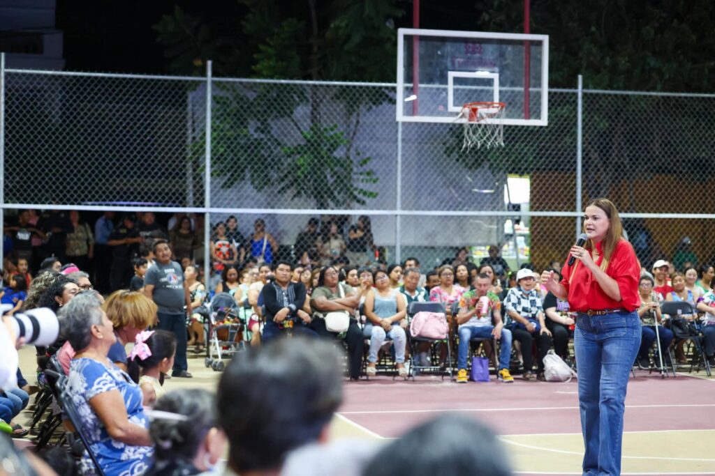 En su discurso, Cecilia Patrón reafirmó su compromiso de seguir trabajando de la mano con la ciudadanía anunciando que el próximo 9 de mayo se reinaugurará el campo de béisbol y la cancha de fútbol de Pacabtún.